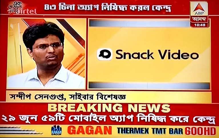 ISOEH Director Mr. Sandeep Sengupta LIVE on "ABP Ananda" Discussing Security Violation of the Chinese APPs. Dated 22nd June 2020.