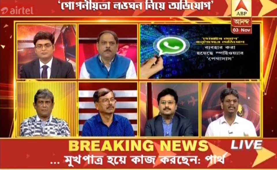 ISOEH Director Mr. Sandeep Sengupta discusses WhatsApp Hacking via Pegasus Spyware on 4th November 2019 on ABP Ananda - 'Sange Suman'